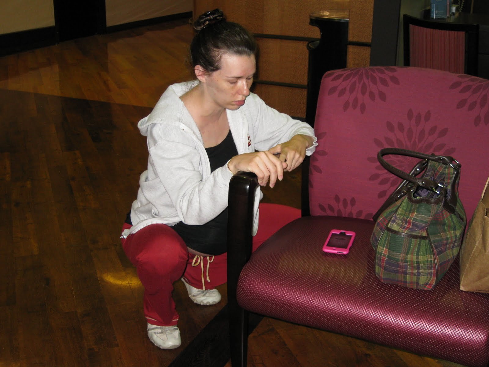 I woke up at 12:03am on Sunday when my water broke on its own. I jumped out of bed as soon as I felt it, and most of the water went on the floor. We were very thankful that we’d put a water-proof liner of the bed. I didn’t feel any contractions, so Kenny and I casually got our things ready and called my parents so that my mom could meet us at the hospital. We figured that we had at least a few more hours to go. My contractions started up pretty intensely while we pulled the car out. We got in the car and called Teresa, our Doula, at 12:26am. During the car ride to the hospital, my contractions became 1 ½ minutes apart. Kenny experienced every man’s dream and got to run two red lights and go way over the speed limit. I could tell he was enjoying himself, even though he was a bit nervous about my contractions being so close. We got to the hospital at 12:45am. Kenny had to check us in because I was really working through some contractions. In fact, I didn’t even make it far into the lobby, before I grabbed a chair and squatted in the floor to get through the contractions.