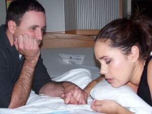 The night before, I was online reading about what I could do and a doula on a message board told me about a client that successfully turned a breech baby in the bathtub with the assistance of ice packs behind the baby to encourage the baby to move away from the cold, and in the direction you want. So off to the bath I went…ice pack in hand. I put the ice pack behind the baby’s head and just held it there for a bit and the baby moved slightly away from it. Whoa! Maybe we have a chance! I continued to do this, and with each inch the baby would move, I would push the ice pack down into my belly to kind of form a blockade to keep the babe from going back. It was working! I got the head down near my right hip bone and I felt a lot of pressure on my hip. I felt like we were stuck in that position and I had to stand up. So I stood (not easily), keeping pressure on the ice blockade, and I felt the head slip over my hip and go head down! I started screaming for Shane…We’ve got a head down! It was the strangest experience. I called my midwife first thing in the morning to tell them what happened, and they had me come into the office to determine if baby was head down, and it was! We were able to cancel the ECV at the hospital!